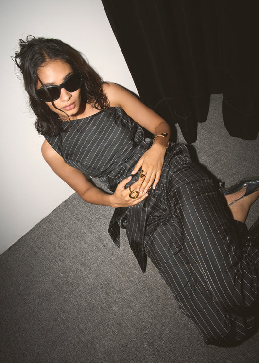 Blackened Pinstripe Top & Pants