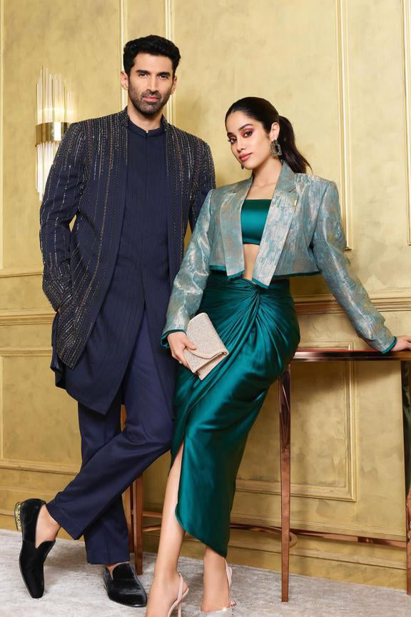 Janhvi Kapoor x Emerald Cropped Blazer With Skirt