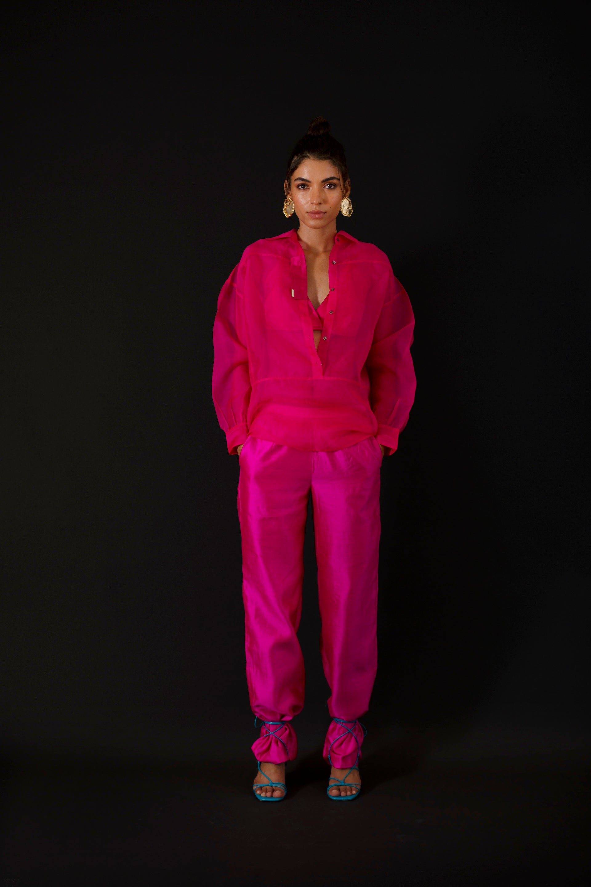 Sun Kissed Coral Organza Shirt With Cigarette Pants