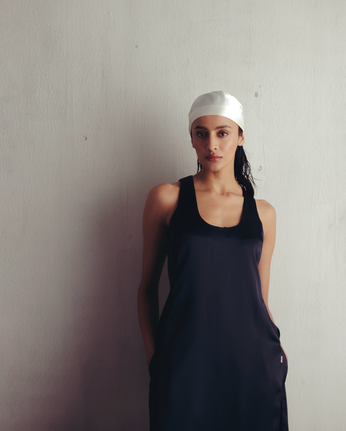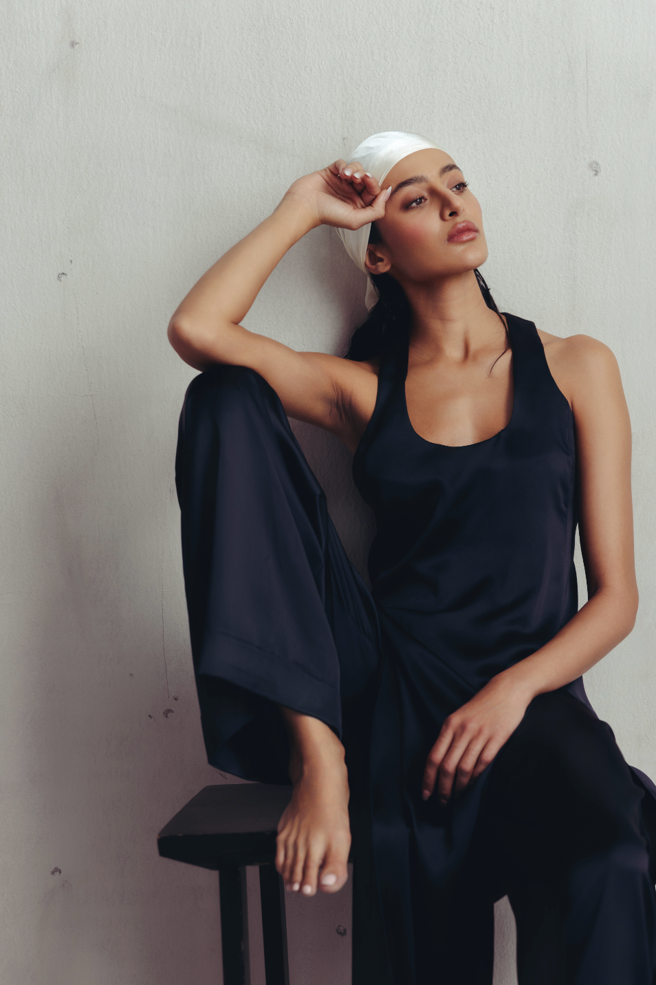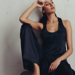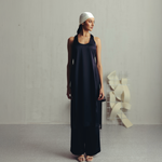 This striking co-ord set features a scoop neck long tank and straight trousers. The effortless silhouette blends modern trend with minimal style, easy to dress up or down according to the occassion.