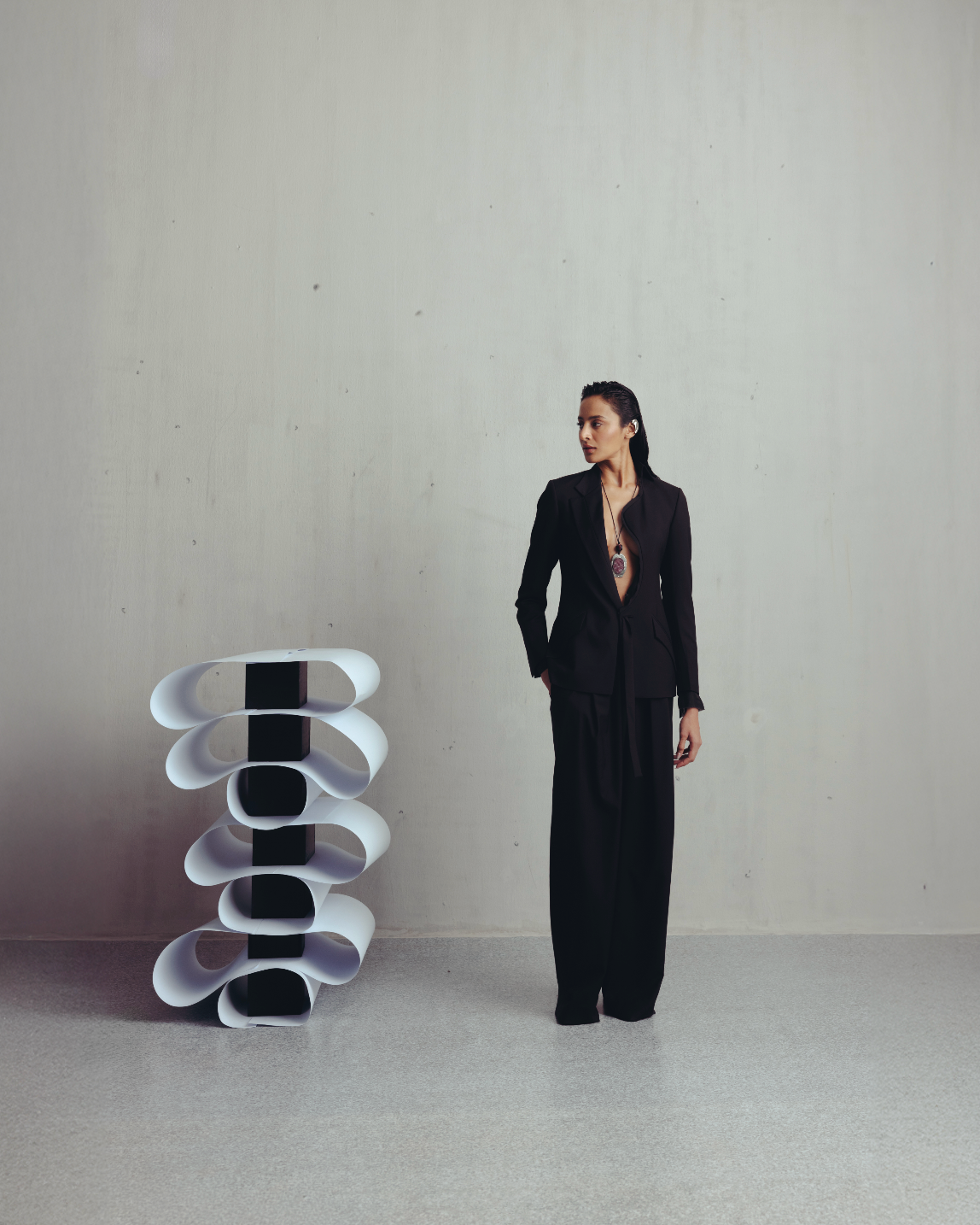 • Blazer with a bold swirl-shaped cutout for an edgy look