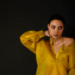 This pop coloured co-ordinate set is a great outfit for a night out with friends or an event. The multiseam, oversize organza shirt with straight leg silk trousers & a halter bralette make it young & glamorous. Recommend pairing it up with contrast coloured strappy heels & a singular piece of chunky jewellery.