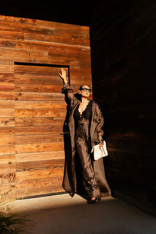 Black Iris Cropped Trench & Sleek Pants