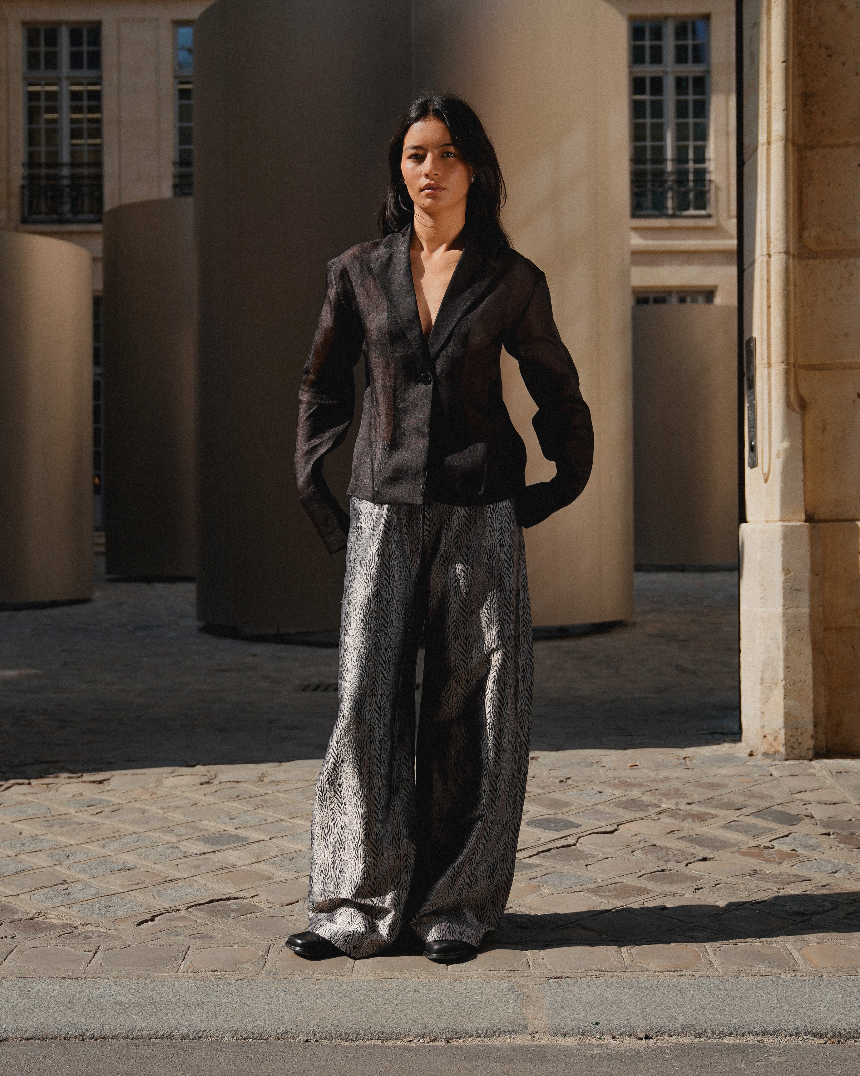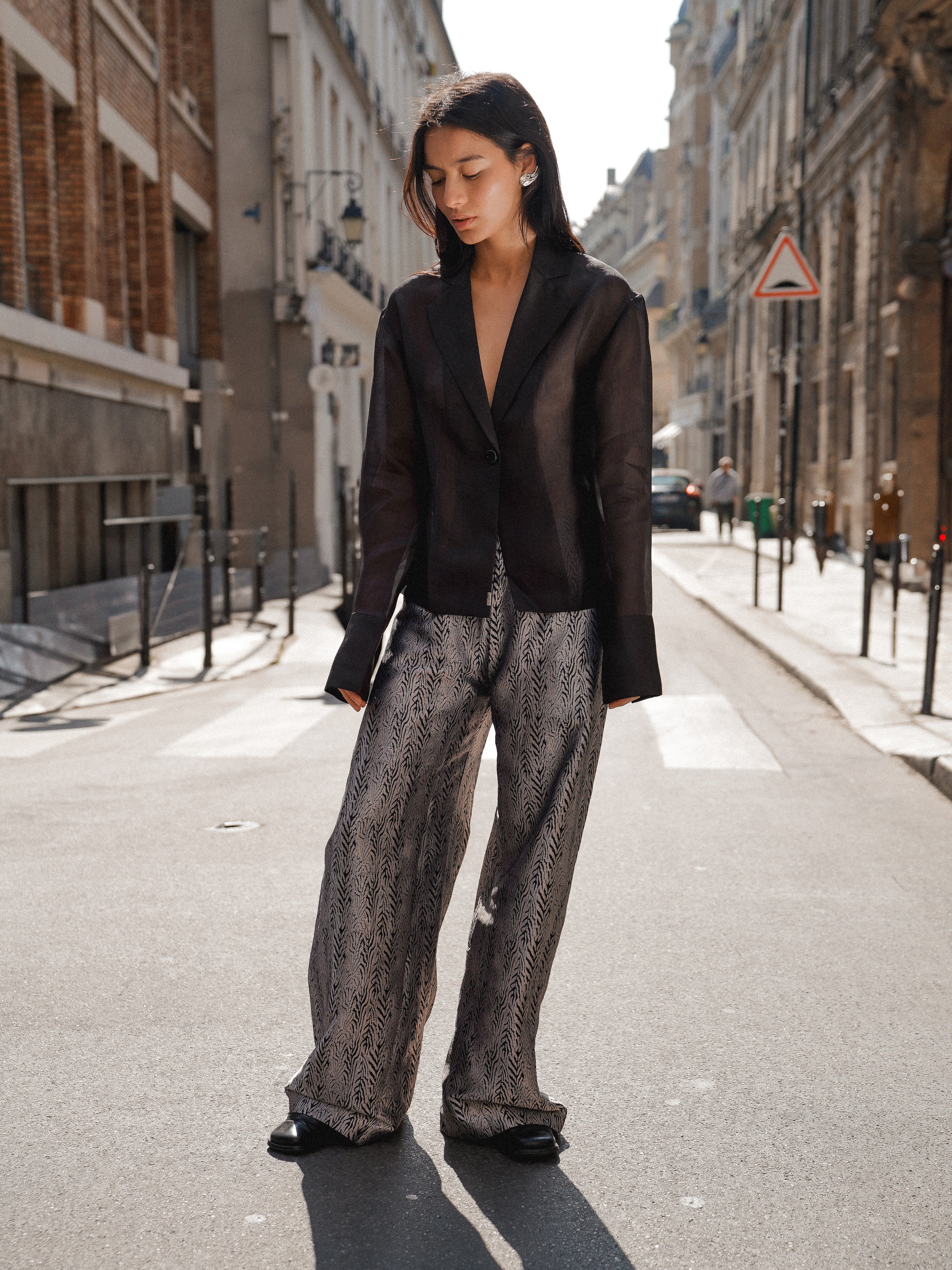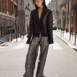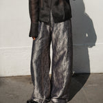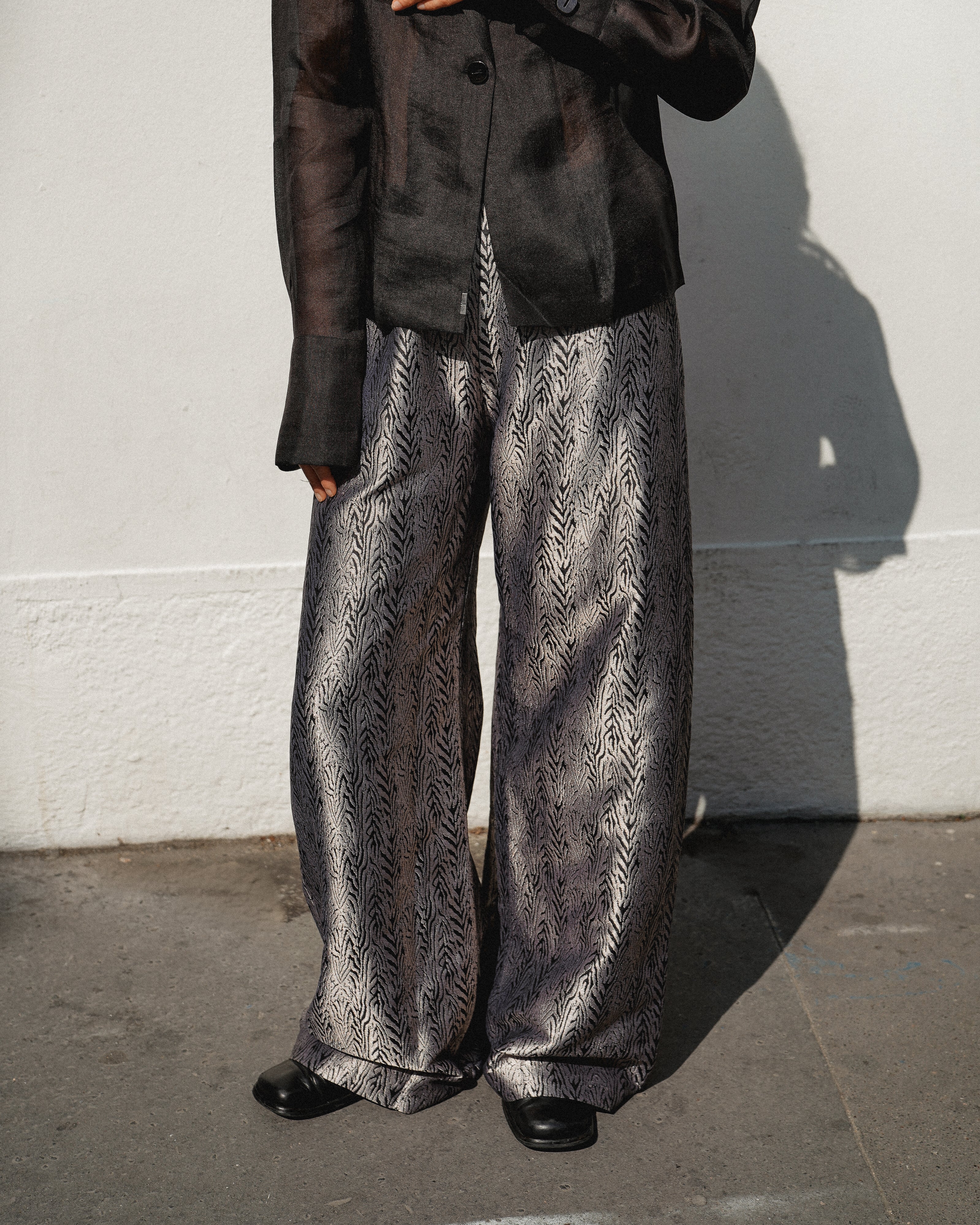 Handwoven silk tiger print barrel-fit pants with a touch of zari, blending in traditional craft with modern trends