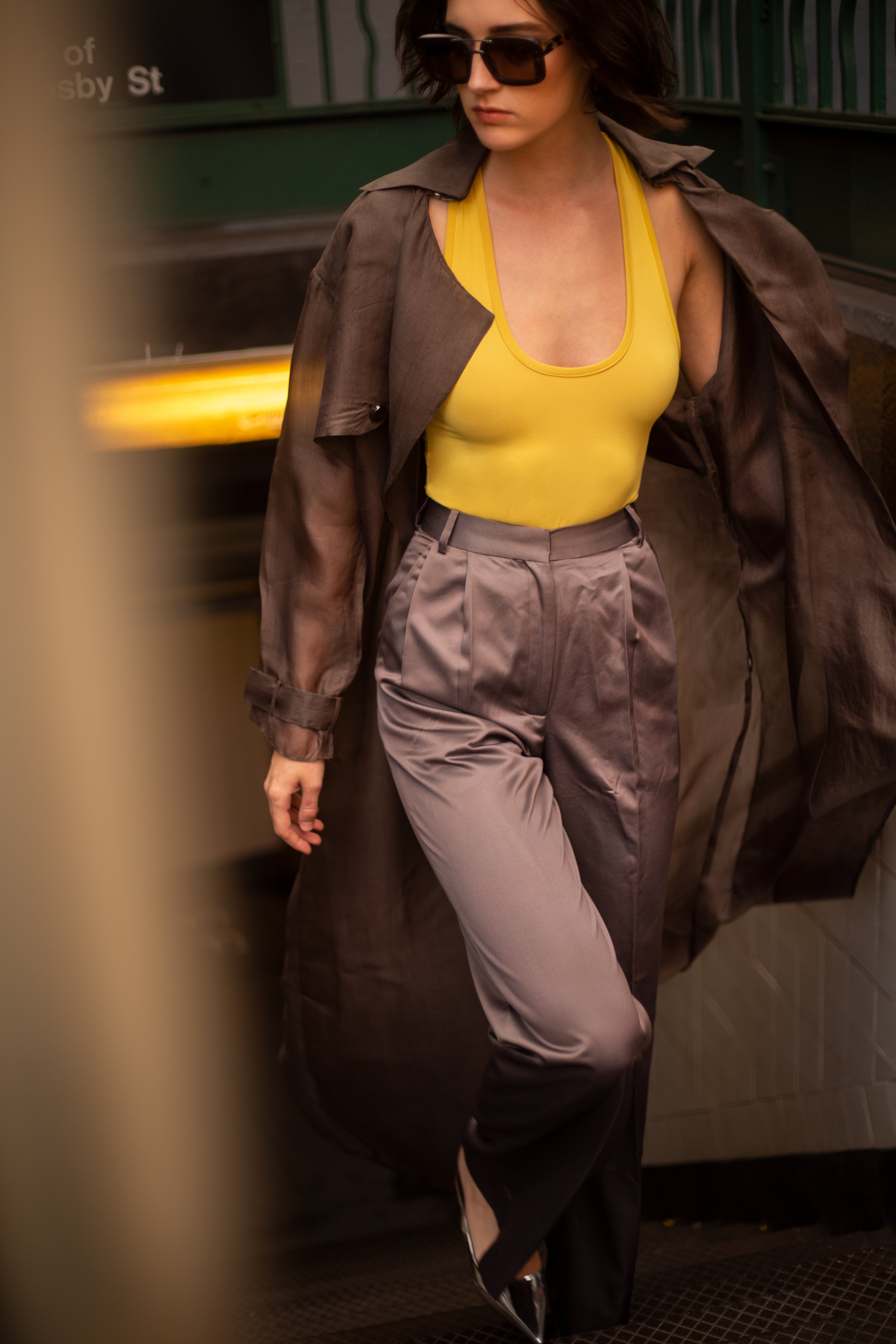 Tender Yellow Scoop Neck Bodysuit & High Rise Flowy Pants