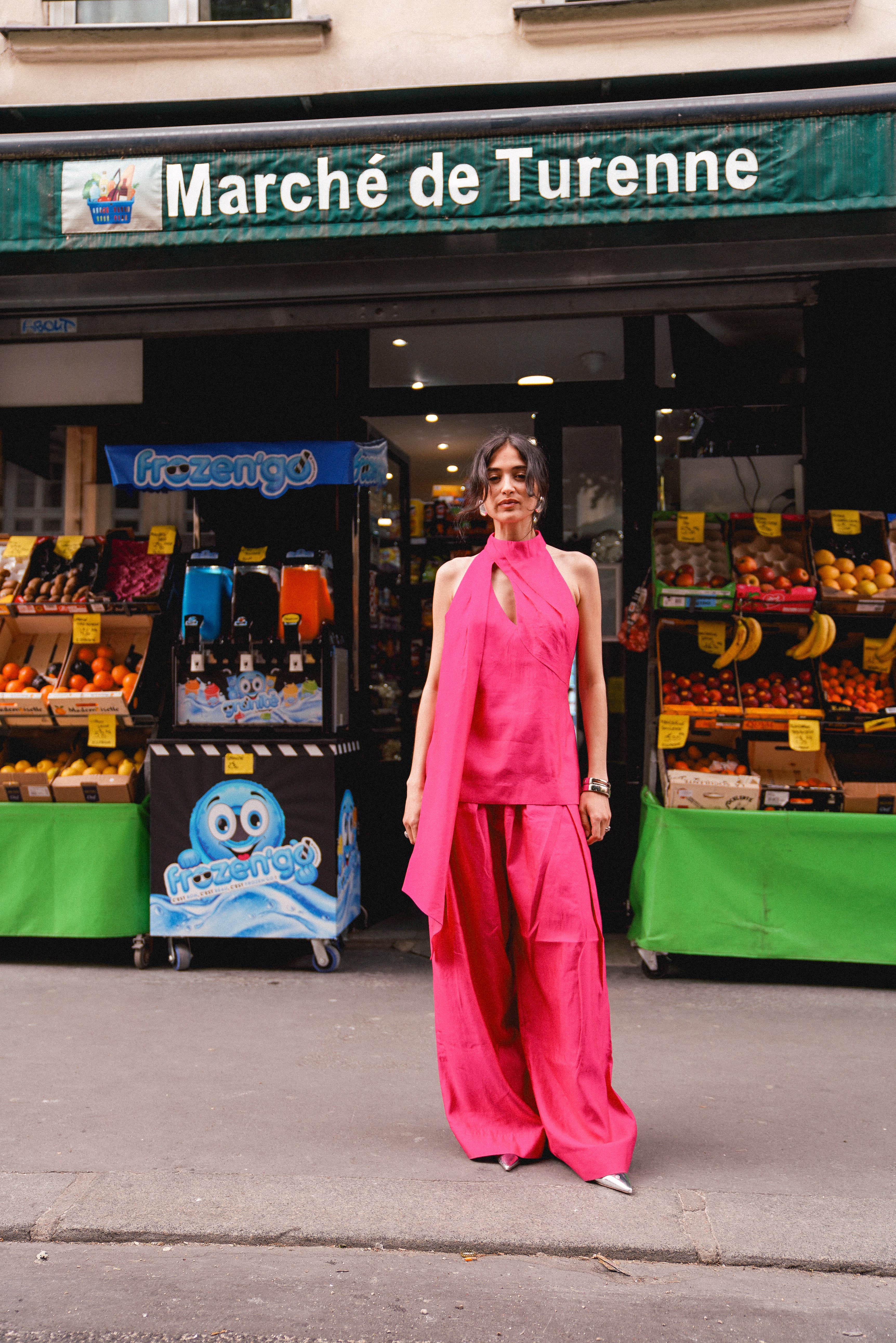 Organza Blazer & Woven Tiger Print Barrel Pants