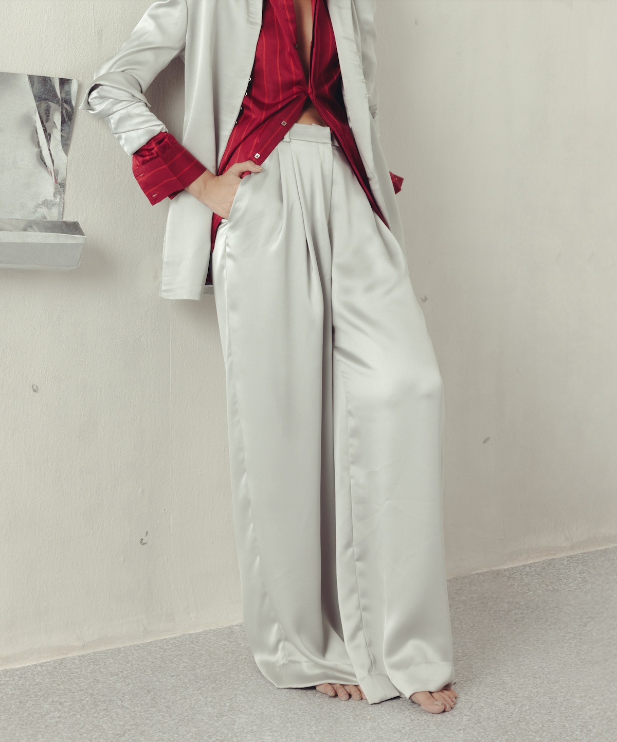 Gray Contours Pinstripe Trousers
