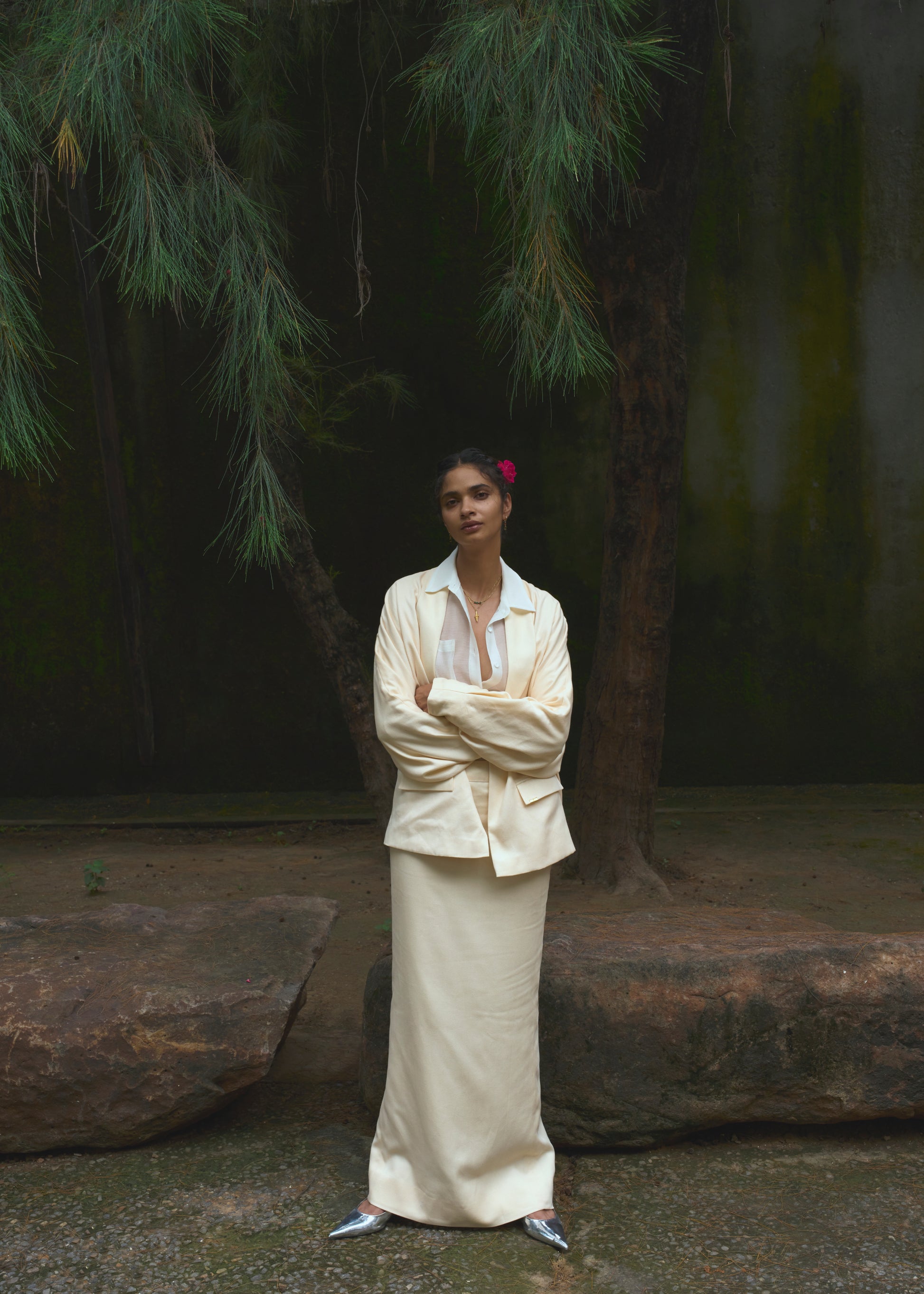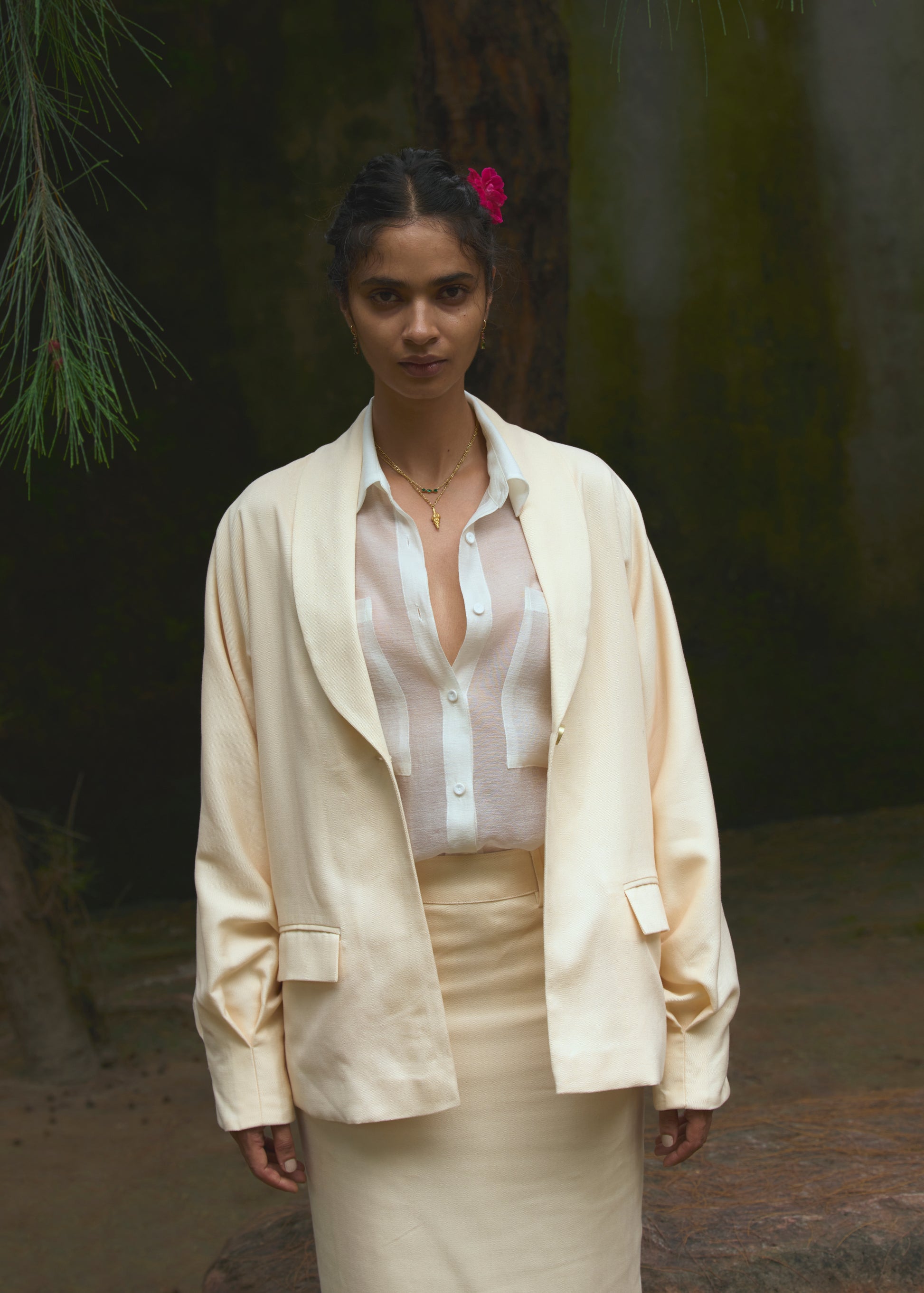 Butter Cream Shawl Collar Jacket & Pencil Skirt