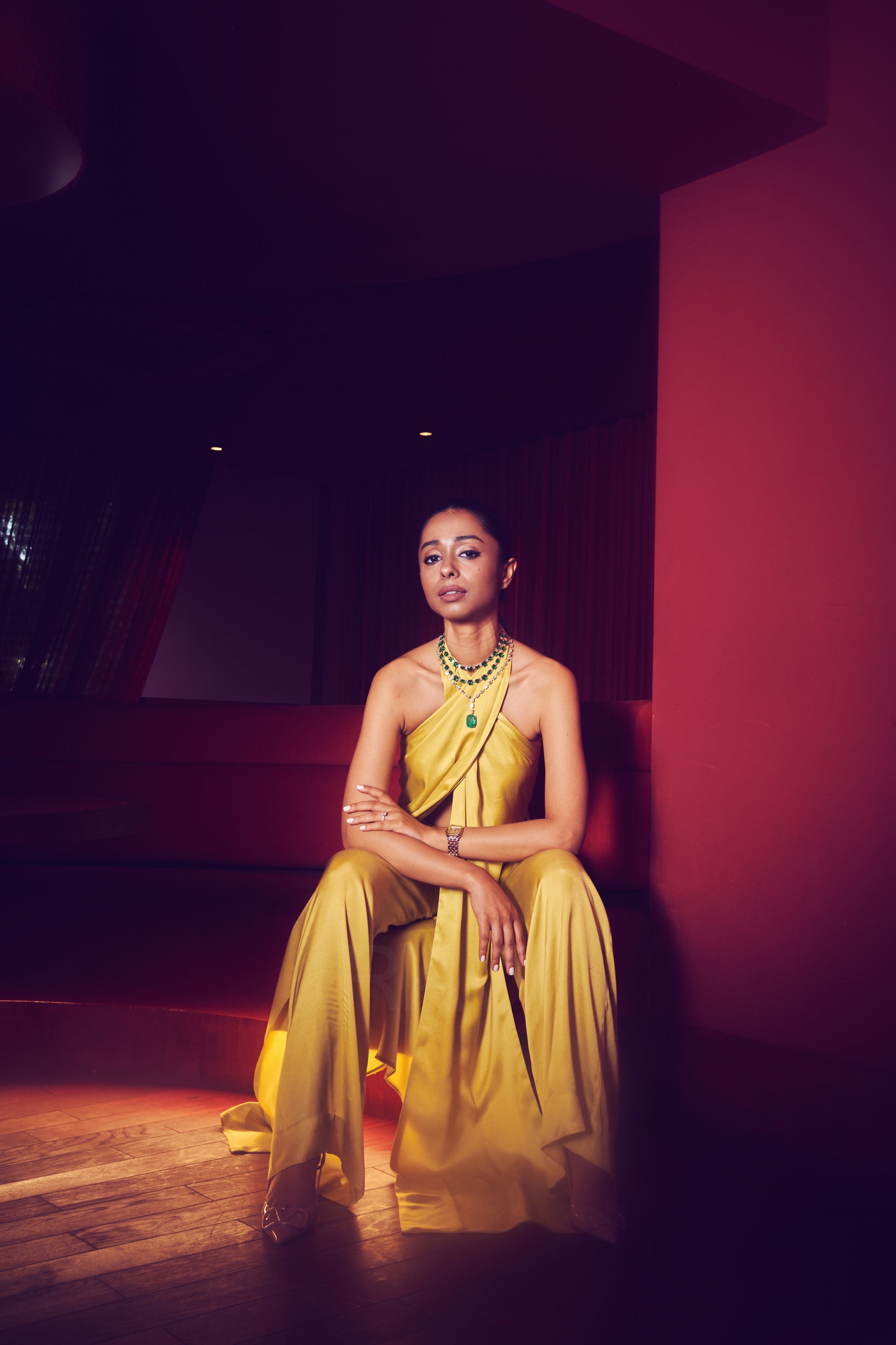 She feels young & vibrant, full of energy & possibility, as she walks around in this flowy outfit. The soft satin gently drapes around her figure, fluttering in the warm summer breeze, emboding a carefree spirit. The understated tie around neck with an exposed back makes her feel trendy & fashion forward as strolls along the beach.