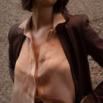This sheer nude-colored shirt embodies an alluring sense of masculinity while serving as an impeccable layering piece. It is designed to blur the lines between classic elegance and contemporary charm, making it a versatile addition to any fashion-forward wardrobe. This subtle transparency creates an intriguing visual effect, lending an understated sexiness to the shirt. The silhouette is rather relaxed, allowing for comfort and ease of movement. The sleeves are artfully designed with elongated cuffs to graze the wrists, adding a touch of sophistication to the overall look.