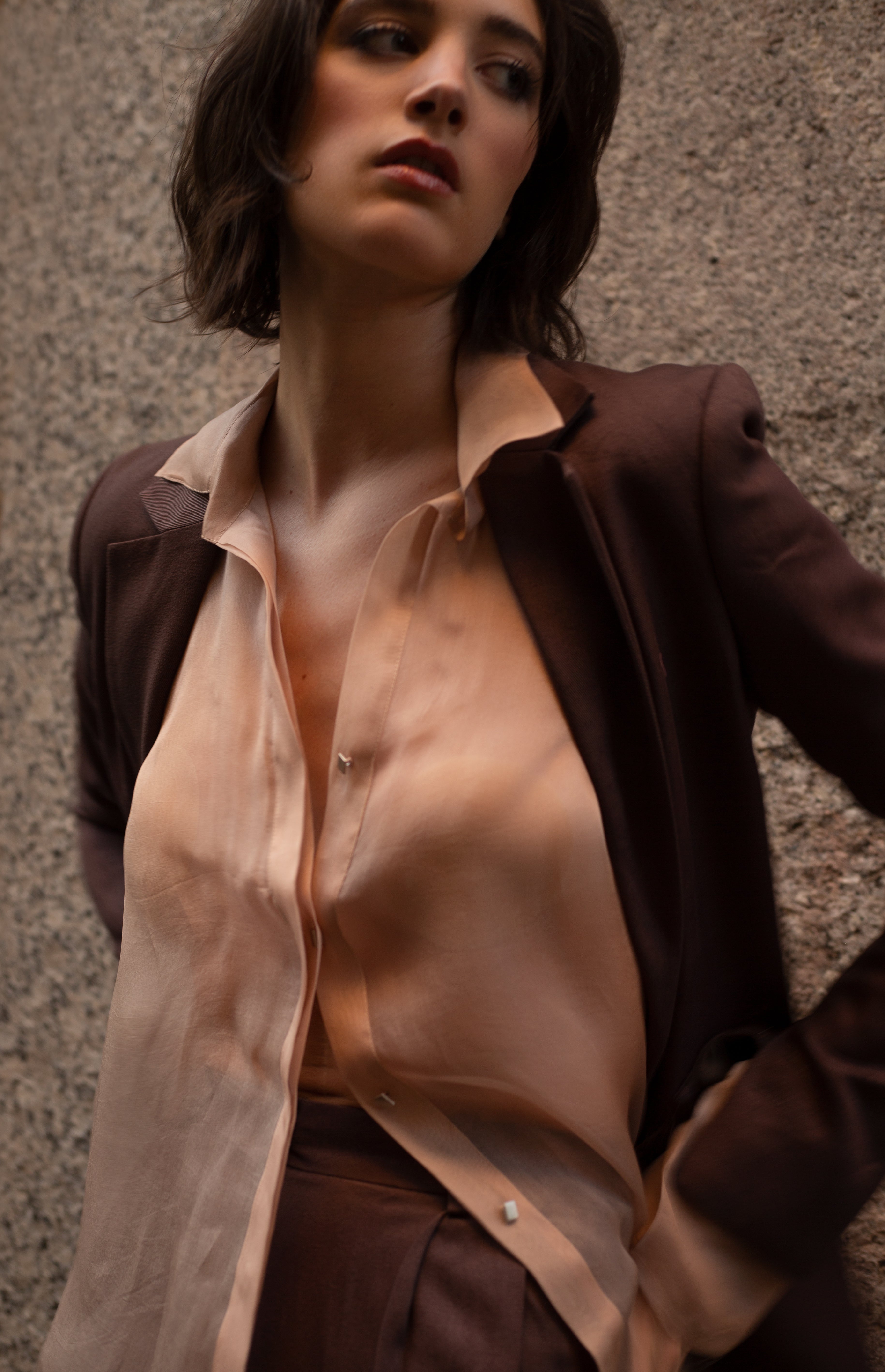 • Fabric : Heavy Weight Tensil Twill (pantsuit), Silk Organza (shirt)